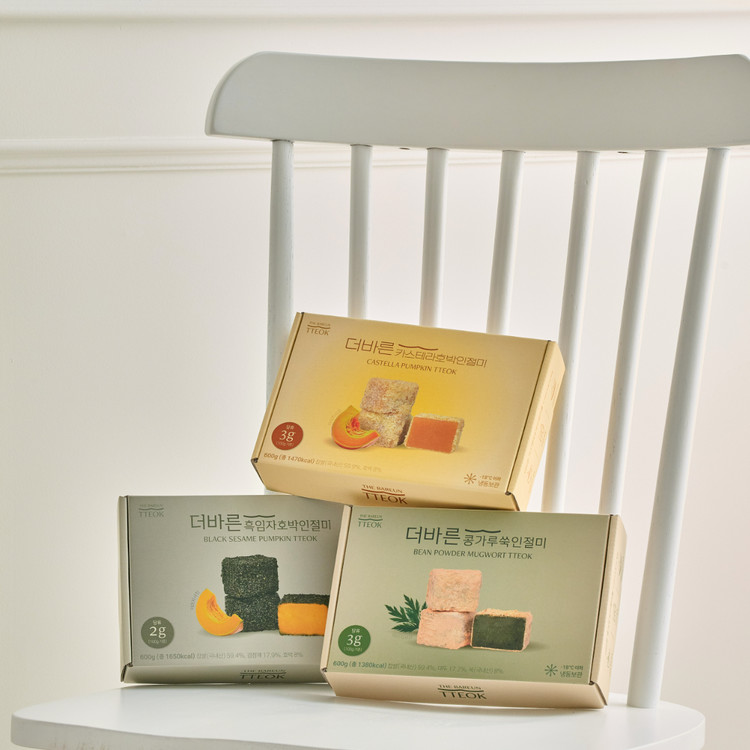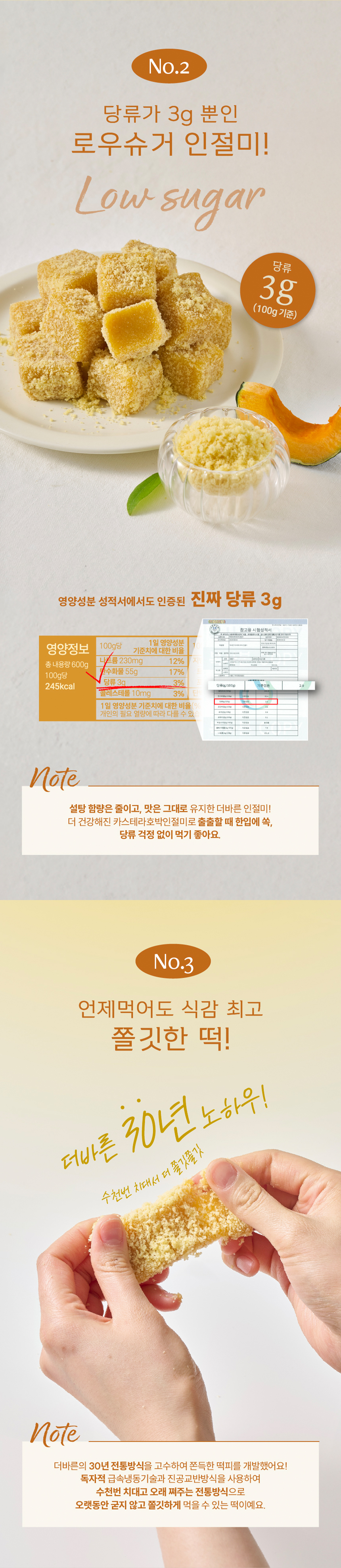 구성상품 : 카스테라 호박 인절미 1개, 흑임자 호박 인절미 1개, 콩가루 쑥 인절미 1개