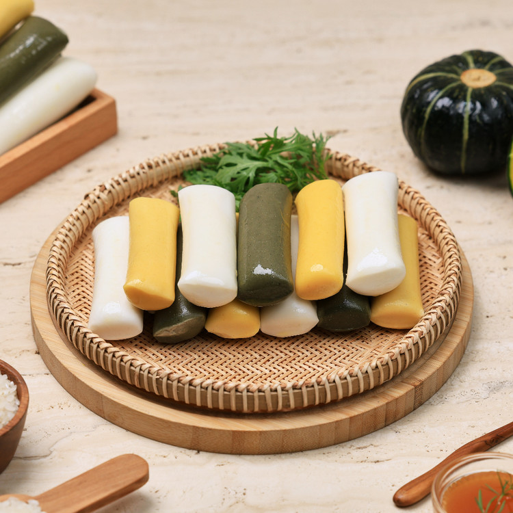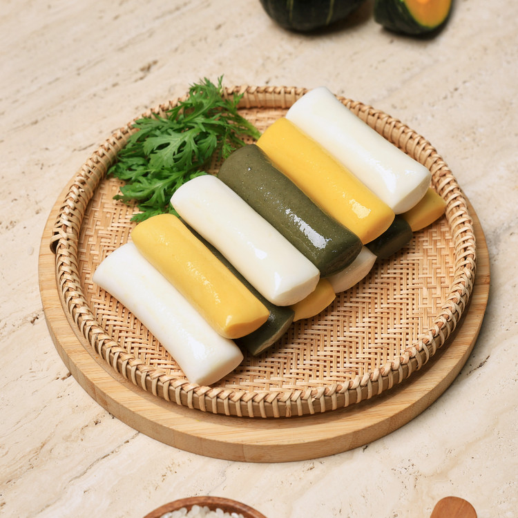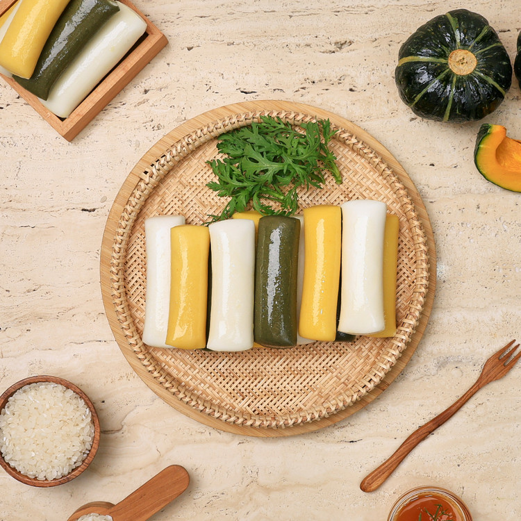 100% 국내산 멥쌀, 쑥, 단호박으로 세가지 맛과 색을 낸 더바른의 가래떡!